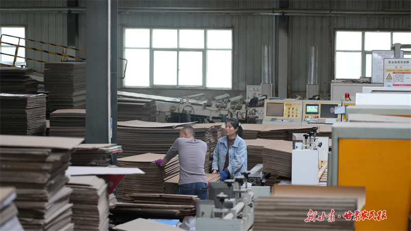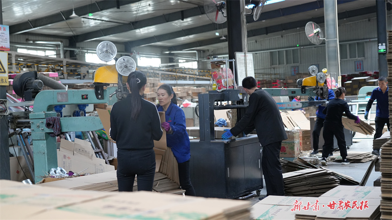 10月21日,走進靜寧欣葉包裝印務(wù)集團生產(chǎn)車間內(nèi),自動化設(shè)備高速運轉(zhuǎn),工人們在分切、壓線、印刷、釘箱等工序上有序作業(yè),全力以赴趕制訂單。